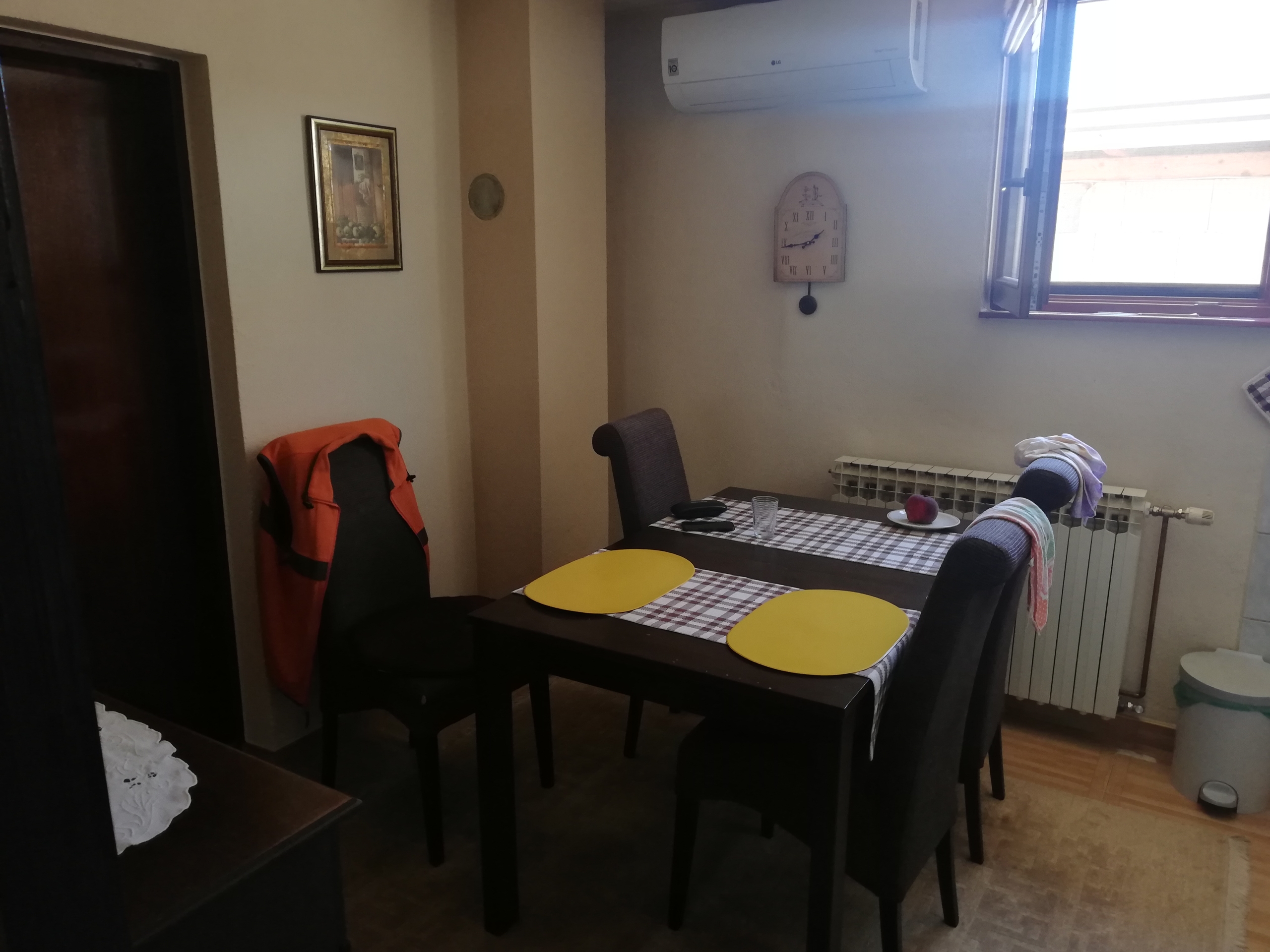 Prodaje se lijepa kuća potpuno adaptirana (62 m2 u osnovi), koja se sastoji od prizemlja i sprata. U prizemlju je potpuno renoviran lijep jednosoban stan, a na spratu je potpuno renoviran trosoban stan. Sve svijetlo, lijepo, moderno opremljeno i namješteno. Ispred kuće se nalazi prostrani trijem, koji je pola natkriven, a druga polovina je otkrivena ili u hladu vinove loze. Veliki profesionalno urađen roštilj je u ćošku. Sve u svemu skrivena od očiju, jedna avlija, spremna da prihvati rođake i prijatelje, poslovne partnere, s ponosom.