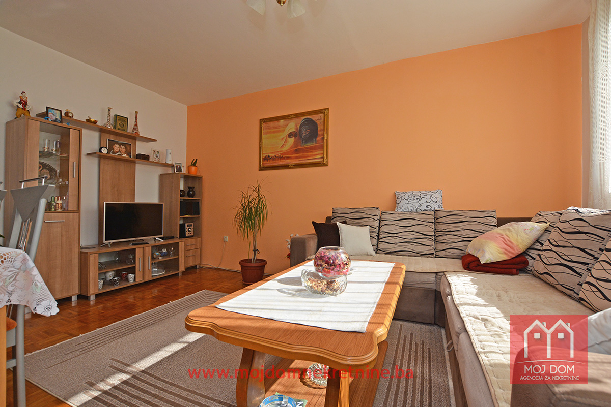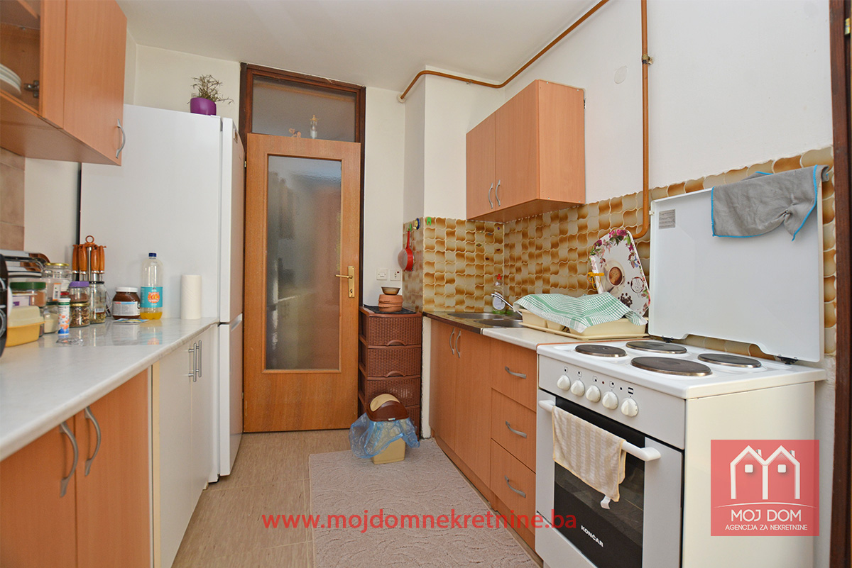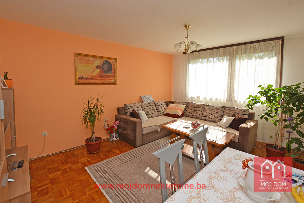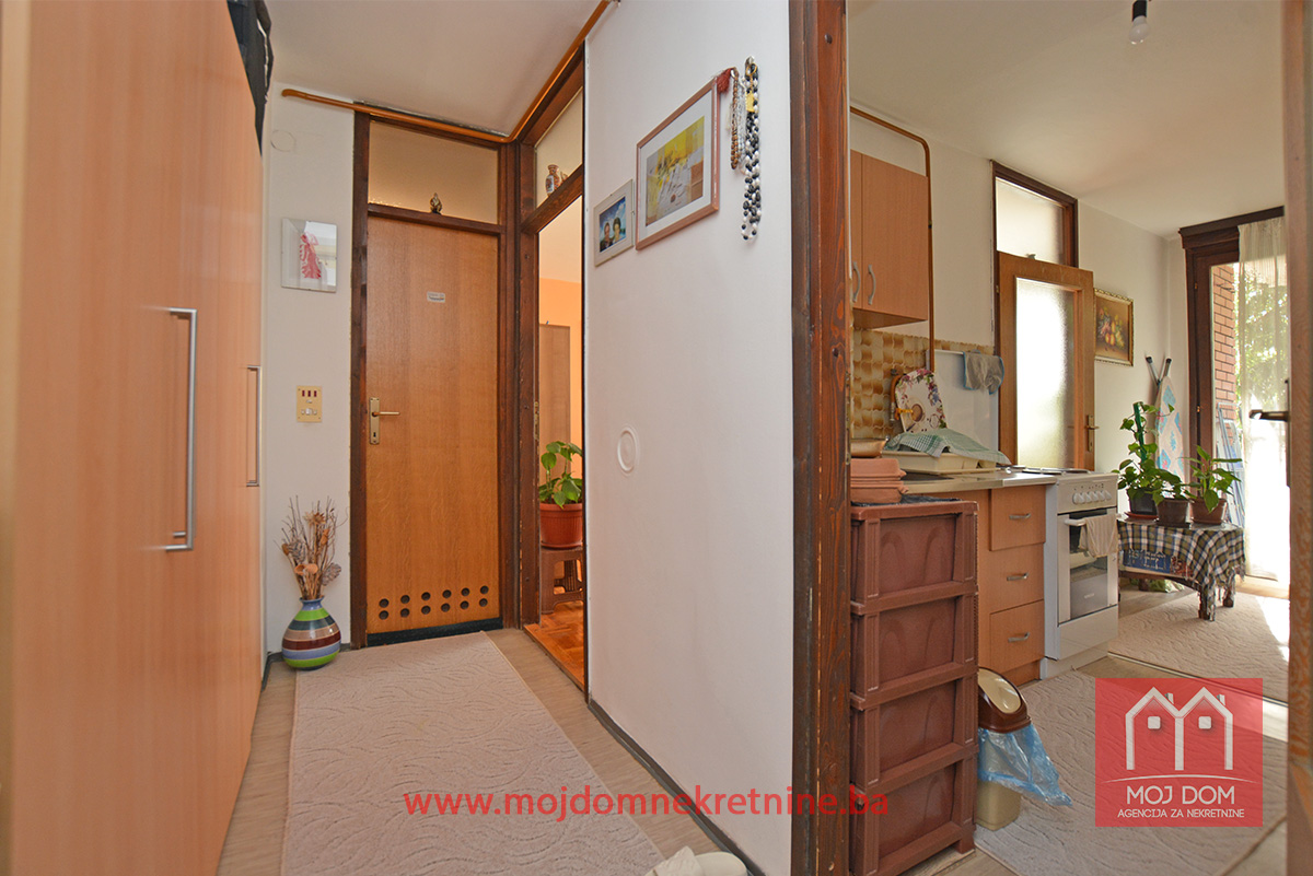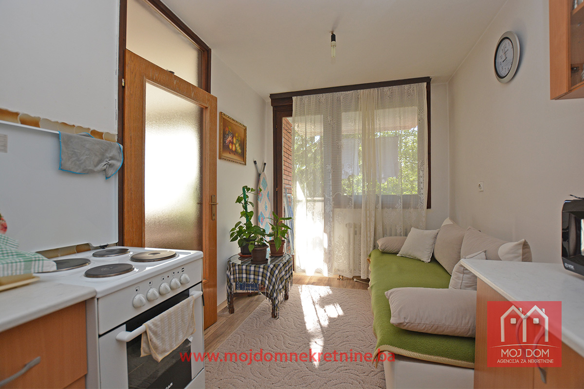 Stan se sastoji od prostranog dnevnog boravka, kuhinje sa trpezarijom, kupatila, balkona i predsoblja. Isti je uglavnom u izvornom stanju ali je redovno i uredno održavan. S obzirom na odličnu dispoziciju stan se uz minimalna ulaganja može pretvoriti i u dvosoban tako što bi se kuhinja i trpezarija pregradile i od trpezarije dobila manja spavaća soba. Grijanje je centralno gradsko iz Toplana a na postojeću kvadraturu svi režijski utrošci su dosta povoljni. Pod je parket, keramičke pločice su u kupatilu i kuhinji, ugrađeni su automatski osigurači i protivprovalna vrata a stan posjeduje i interfon.
