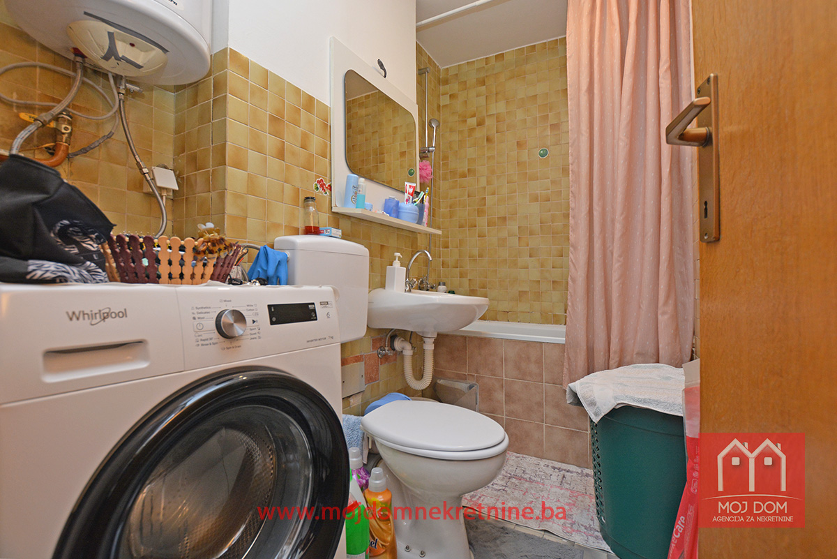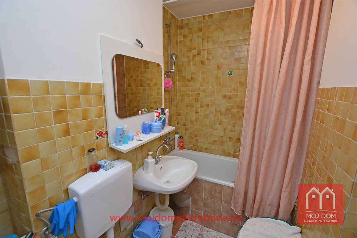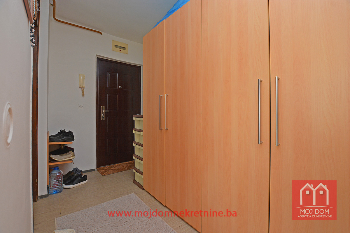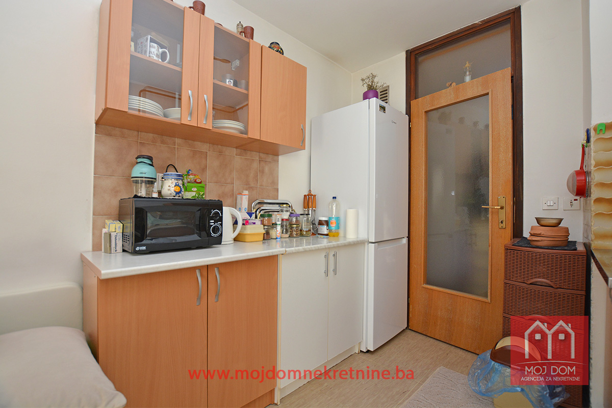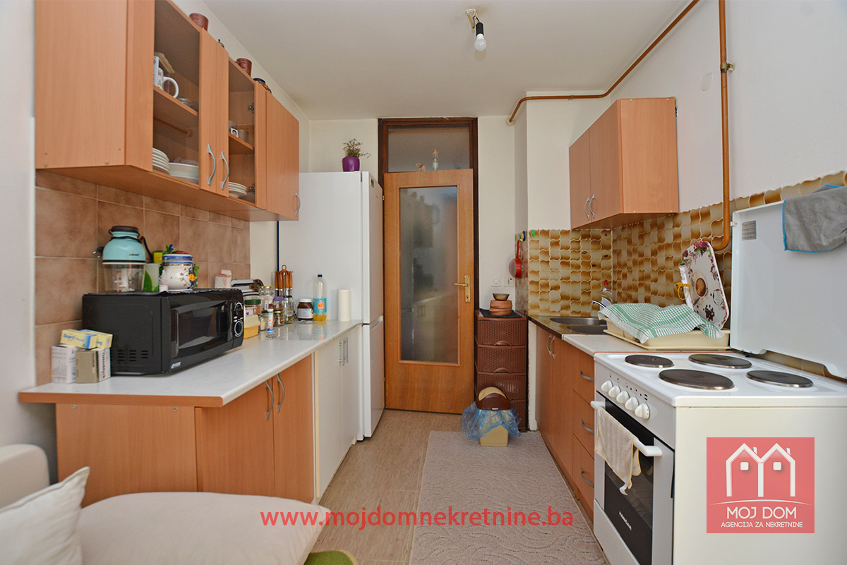 Stan se sastoji od prostranog dnevnog boravka, kuhinje sa trpezarijom, kupatila, balkona i predsoblja. Isti je uglavnom u izvornom stanju ali je redovno i uredno održavan. S obzirom na odličnu dispoziciju stan se uz minimalna ulaganja može pretvoriti i u dvosoban tako što bi se kuhinja i trpezarija pregradile i od trpezarije dobila manja spavaća soba. Grijanje je centralno gradsko iz Toplana a na postojeću kvadraturu svi režijski utrošci su dosta povoljni. Pod je parket, keramičke pločice su u kupatilu i kuhinji, ugrađeni su automatski osigurači i protivprovalna vrata a stan posjeduje i interfon.