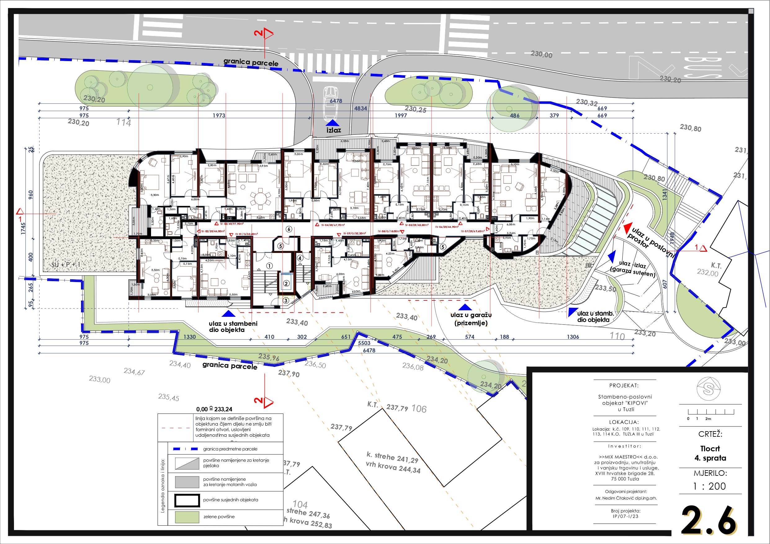 Objekat se prostire na pet etaža i obuhvata ukupno 51 stambenu jedinicu. Površine stanova kreću se od 18 m² do 104 m².