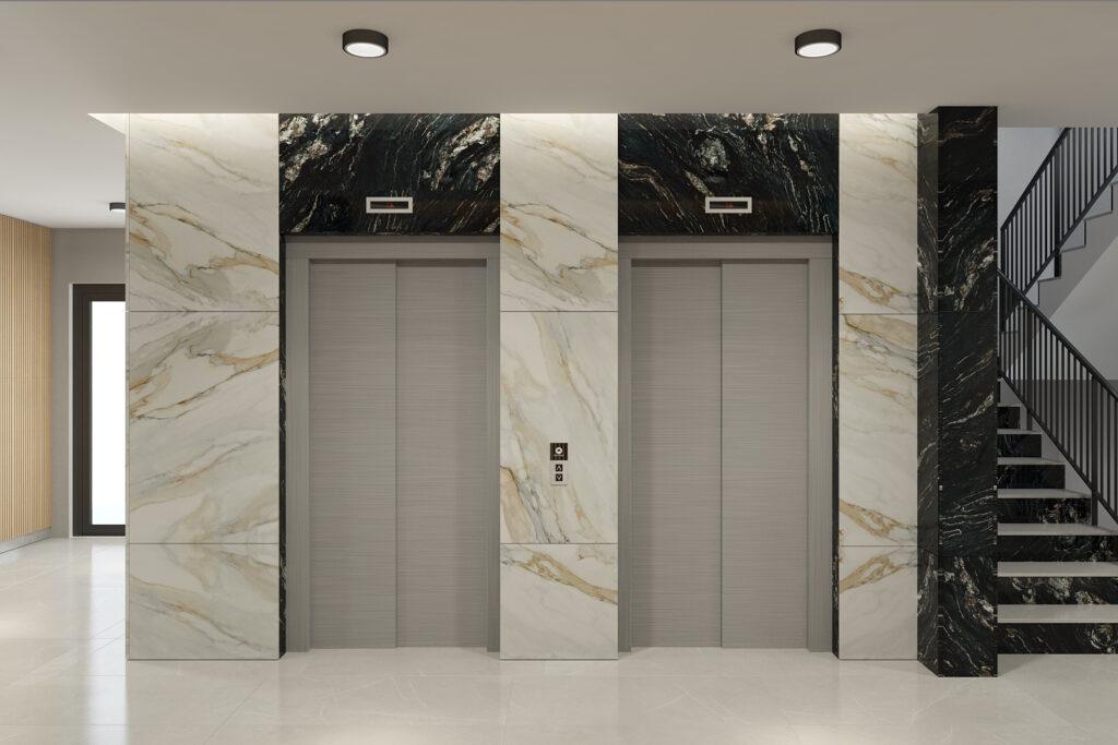 Vertikalna komunikacija je omogućena sa dva lifta renomiranog švicarskog brenda Schindler koji je prepoznatljiv po pouzdanosti, bešumnosti i eleganciji. Kabine liftova su dimenzije 1,35m x 1,65m, visine 2,30m brzine 1,6 m/s, a pozivom dolazi najbliži lift.