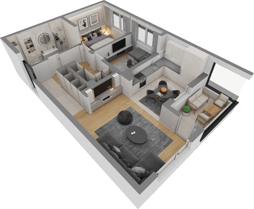• Uz stan je omogućena kupovina parking mjesta u garaži ili vanjskog parking mjesta u zavisnosti od površine stana.