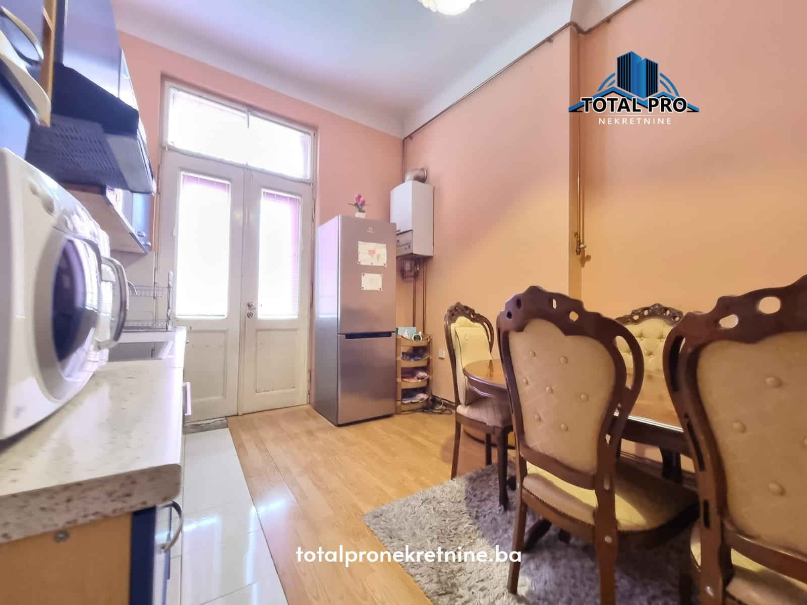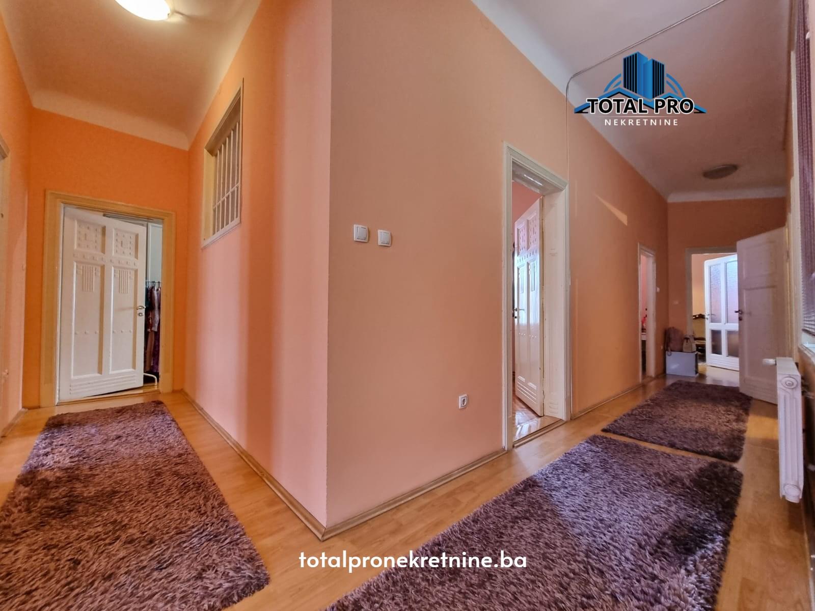 Ovaj dvostrano orijentisan stan smješten je na 3. spratu u zgradi od ukupno 4. sprata, izgrađenoj u austrougarskom stilu, čime pruža poseban šarm i autentičnost. Ukupne površine 136 m², sastoji se od ulaznog hodnika, prostranog dnevnog boravka, kuhinje sa trpezarijom koja ima izlaz na balkon, tri spavaće sobe, kupatila, toaleta i vešeraje.
